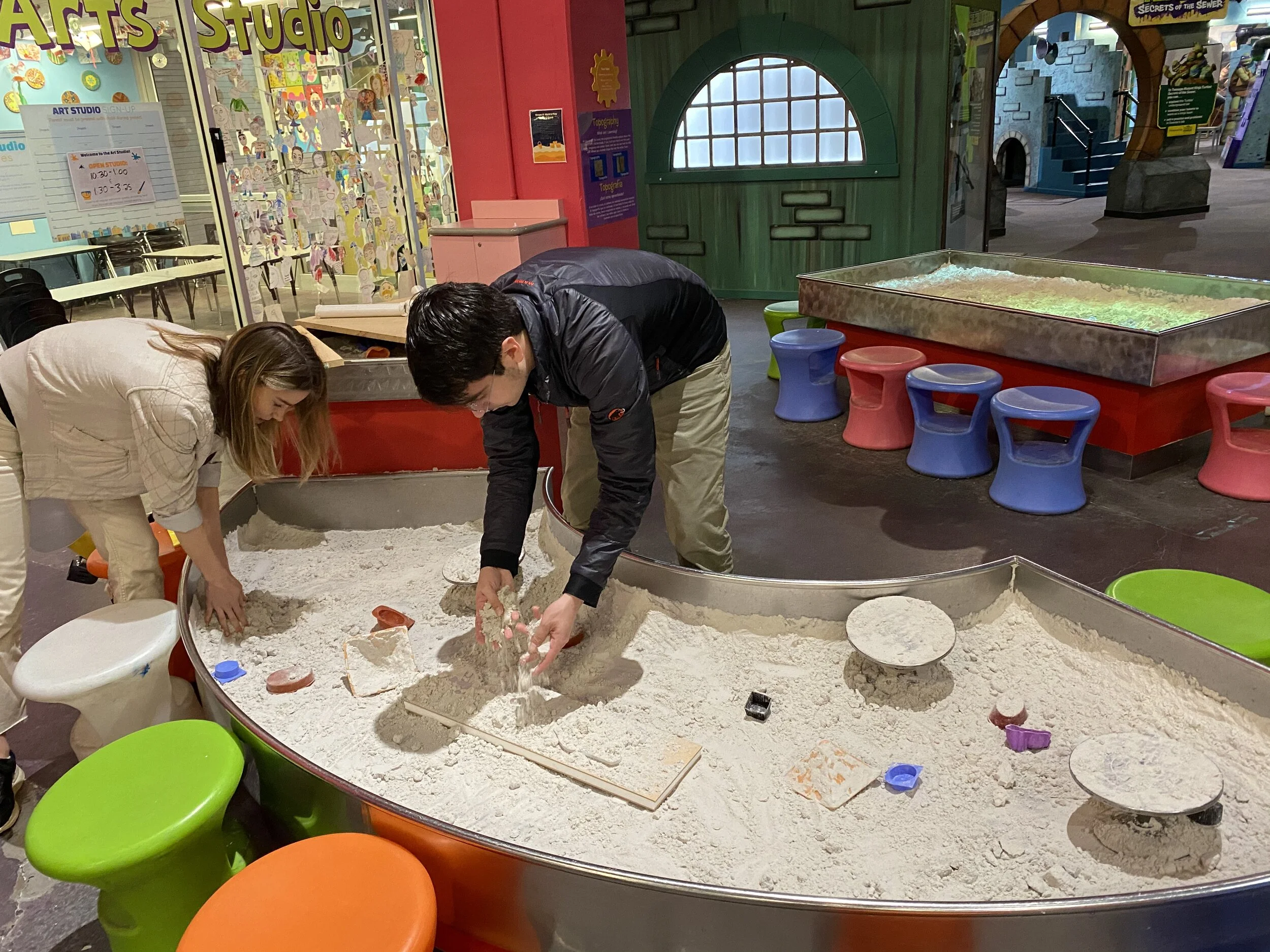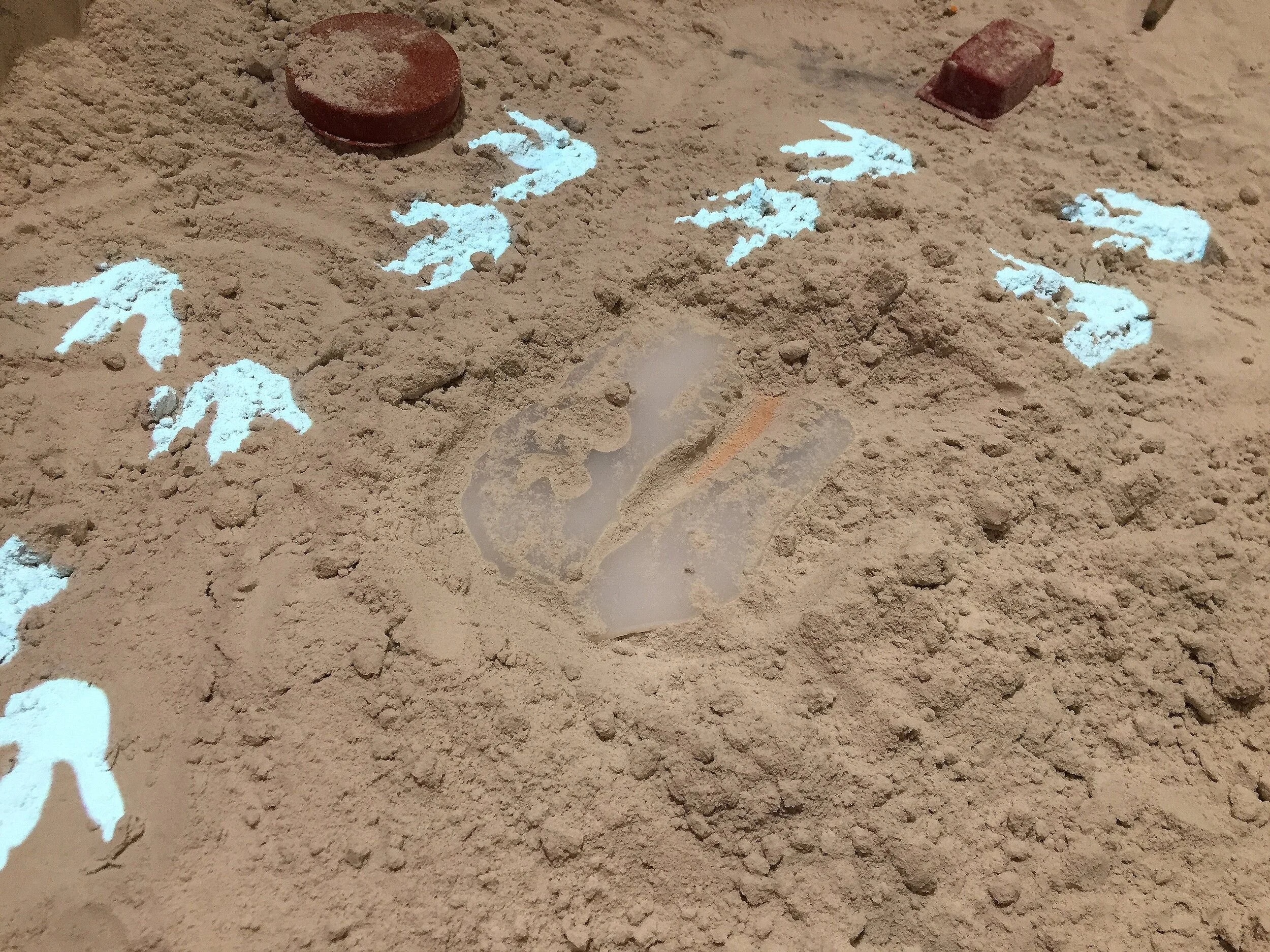 An exhibit concept for an AR fossil dig where kids uncover prehistoric secrets with the help of projected graphics and animations
