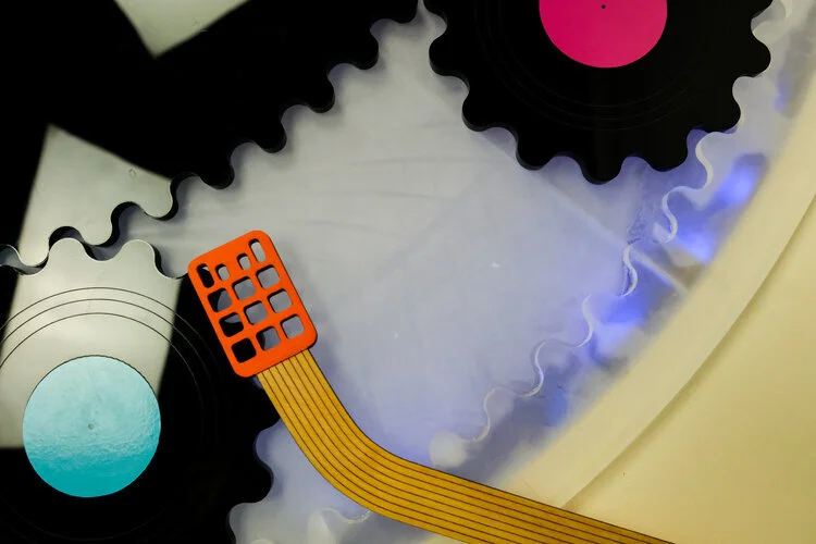 A collaborative musical puzzle that comes to life when colorful gears are placed atop its rotating turntable