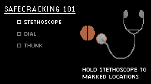 As players rotate the safe’s dial, players can hear various clicking sounds through the stethoscope. A “THUNK!” signals that they’ve found the next number in the combination.