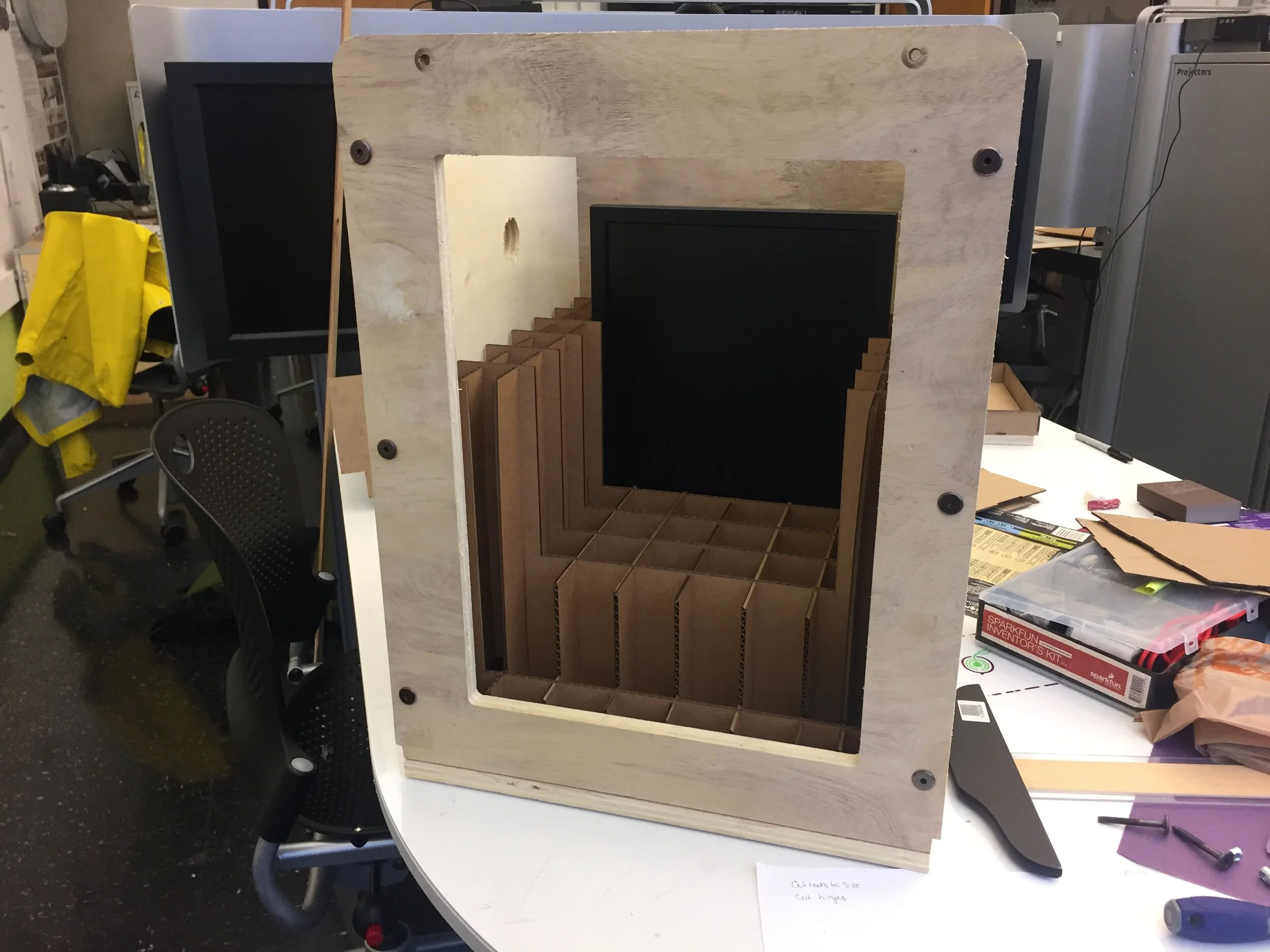 Our first fully-integrated model housed the game in a simplified, boxy safe. It wasn’t the prettiest, but it was tremendously helpful in demonstrating and testing gameplay interactions.